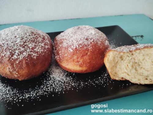Pufoase si aromate, dintr-o portie va ies 13-14 bucati. Dupa reteta aceasta faceam gogosile decupate cu paharul, dar e mai simplu cum procedez mai jos. Ingrediente: 250 g premix pe